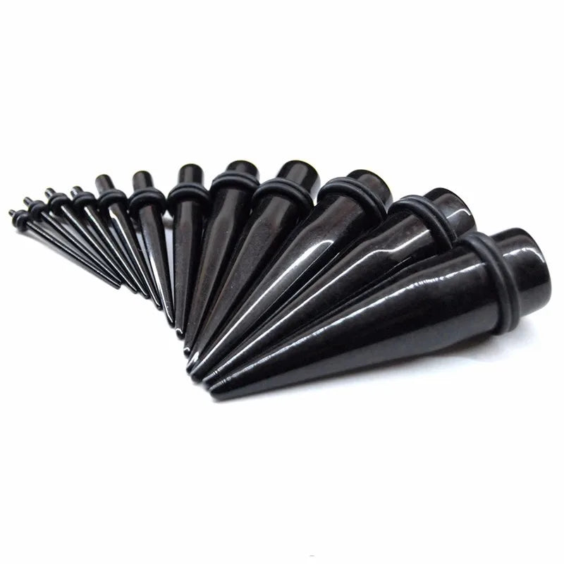 1 Pair Large Size UV Acrylic Black Ear Gauges Ear Taper Tunnel Ear Plug Stretching Expander Body Piercing Wholesale Jewelry