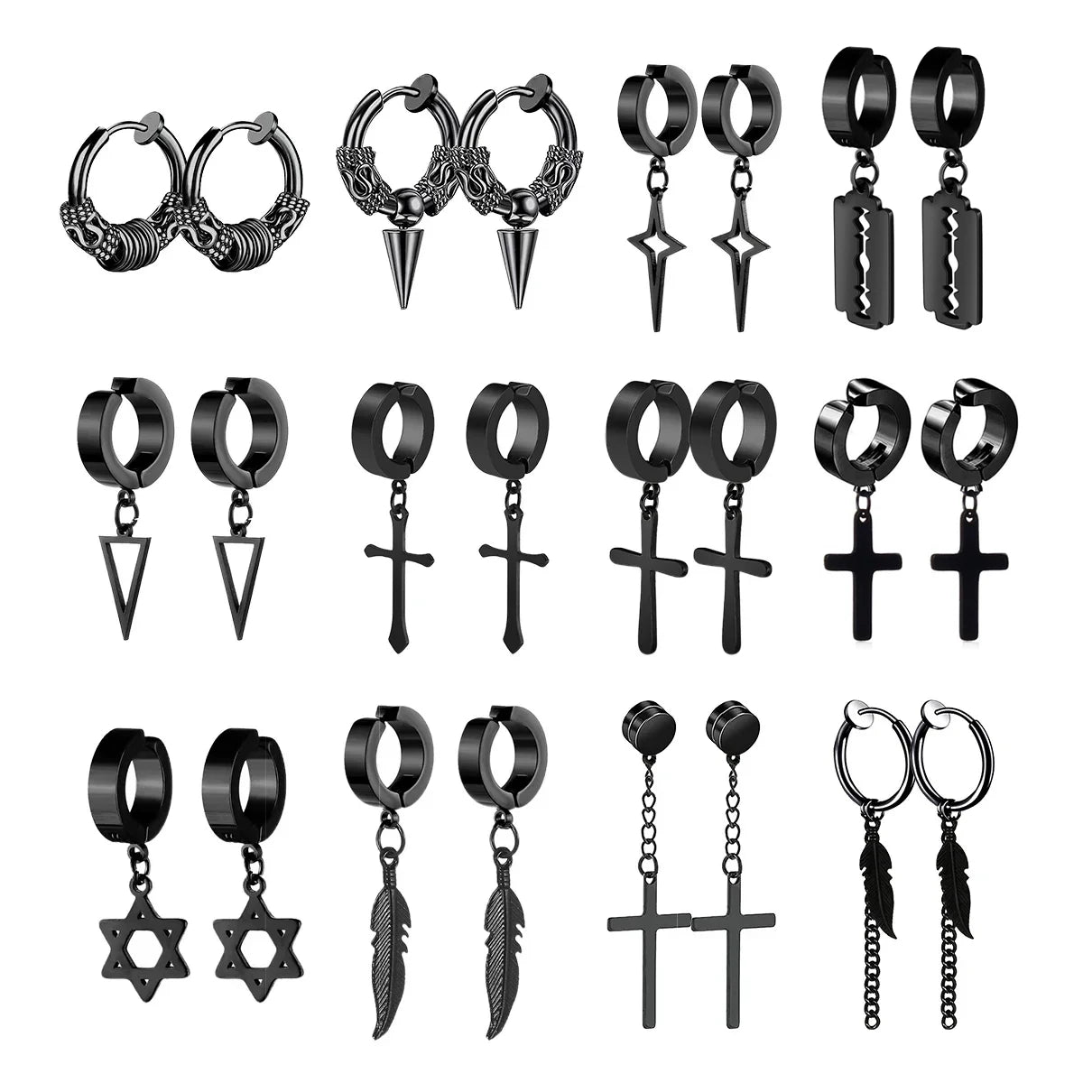1Pair Unisex Punk Fashion Cross Pendant Ear Clip Non-Piercing Earrings Fake Earrings Gift for Men Women Jewelry Daily Wear