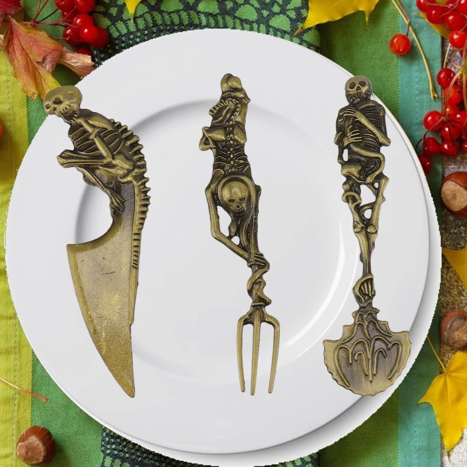 3pcs Halloween Gift Skull Fork/Spoon/Knife Tableware Personality Cutlery Sets Dining Forks Bento Accessories Kitchen Tools