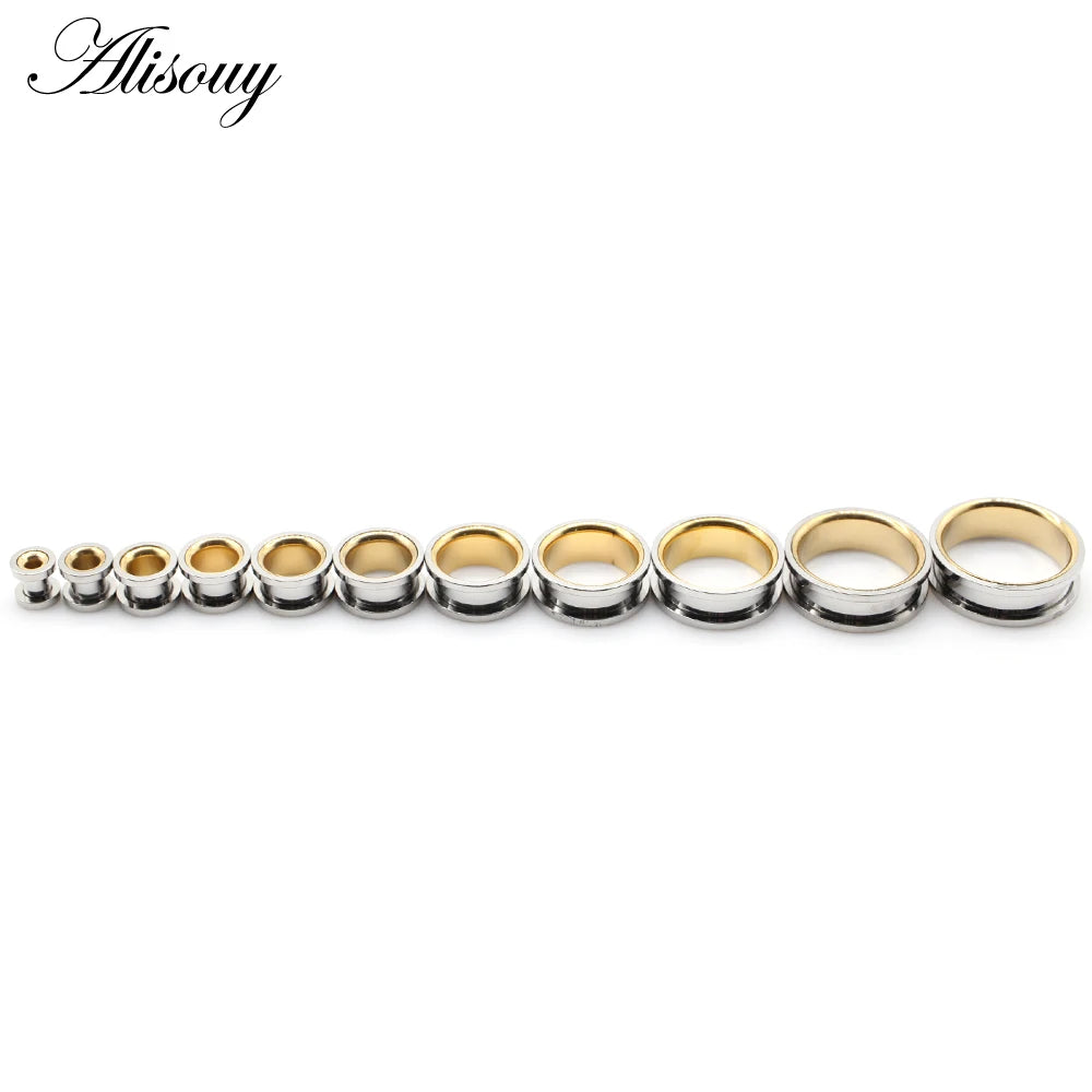 Alisouy 2pcs Smiple Hollow Stainless Steel Flared Ear Plugs Tunnel Expander Stretcher Gauges Flesh Piercing Earring Body Jewelry