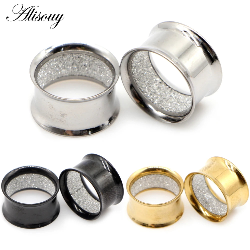 Alisouy 2pcs Stainless Steel Inner Matte Frosted Ear Gauges Expander Stretchers Earrings Plugs Tunnels Piercing Body Jewelry