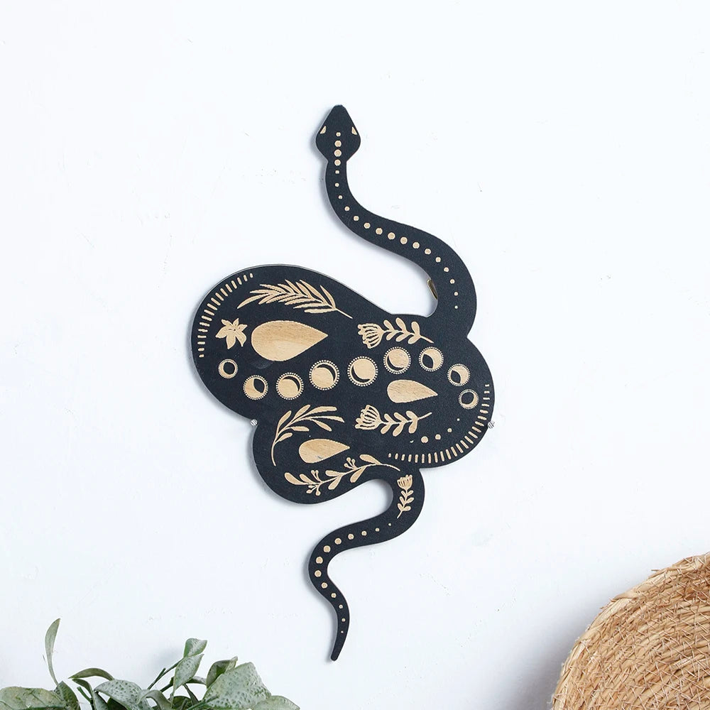 Black Snake Hanging Wall Decor Boho Witchy Wooden Snake Wall Art Room Living Room Bedroom Apartment Aesthetic Home Decoration