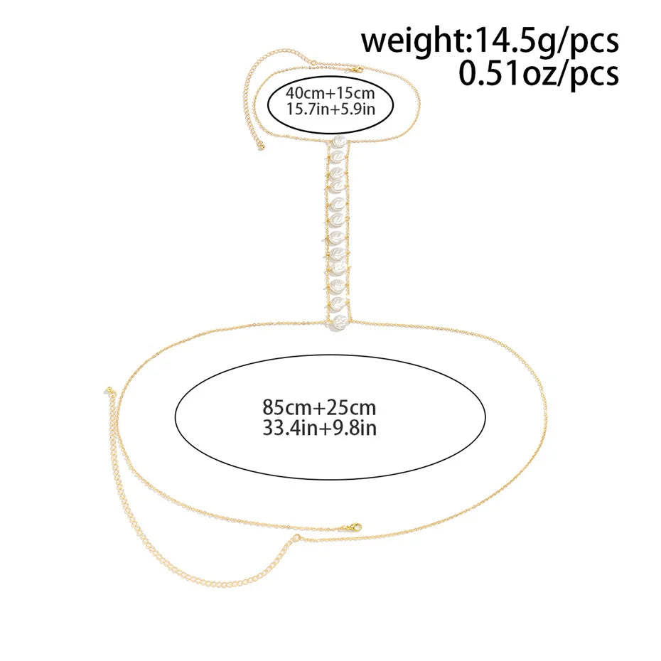 Bohemia Imitation-Pearl Cross Chest Breast Belly Body Waist Chain Necklace for Women Bikinis Summer Beach Y2K Accessories