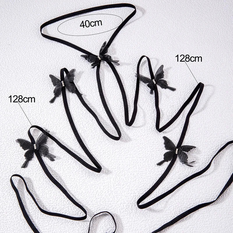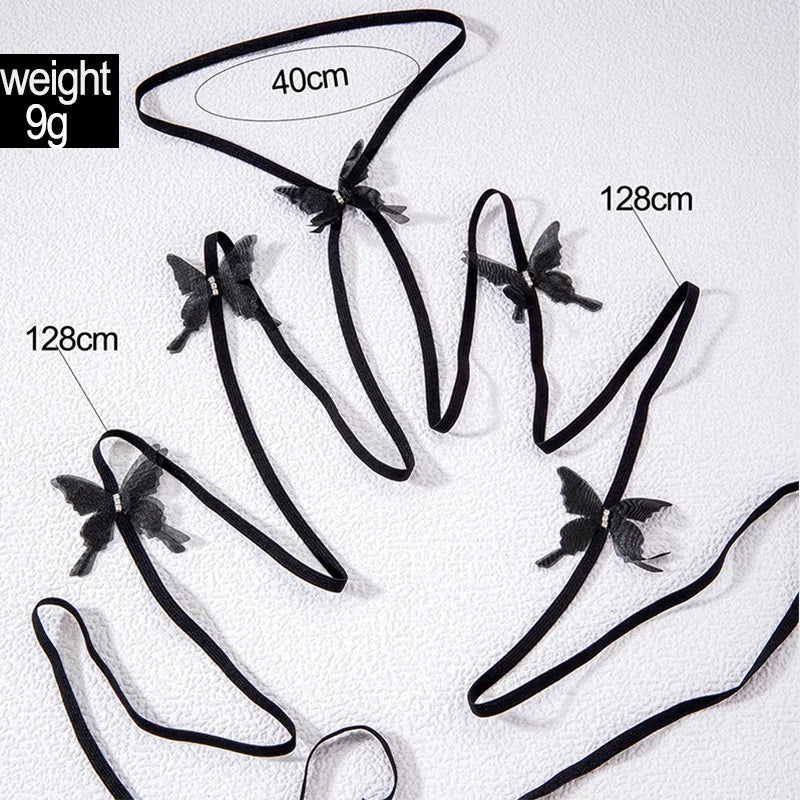 Boho Elastic Band Butterfly Bandage Black Leg Thigh Cross Chains for Women Adjustable Garter Belt Versatile Body Beach Jewelry