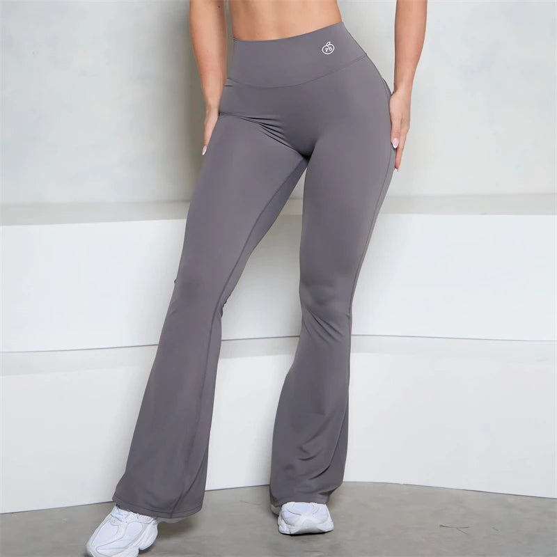 BUM Grey Pocket Flare Scrunch Butt Pants PB Women Tight-Fit Sexy Slim High Waist Pants Push Up Sport Fitness Flare Leggings