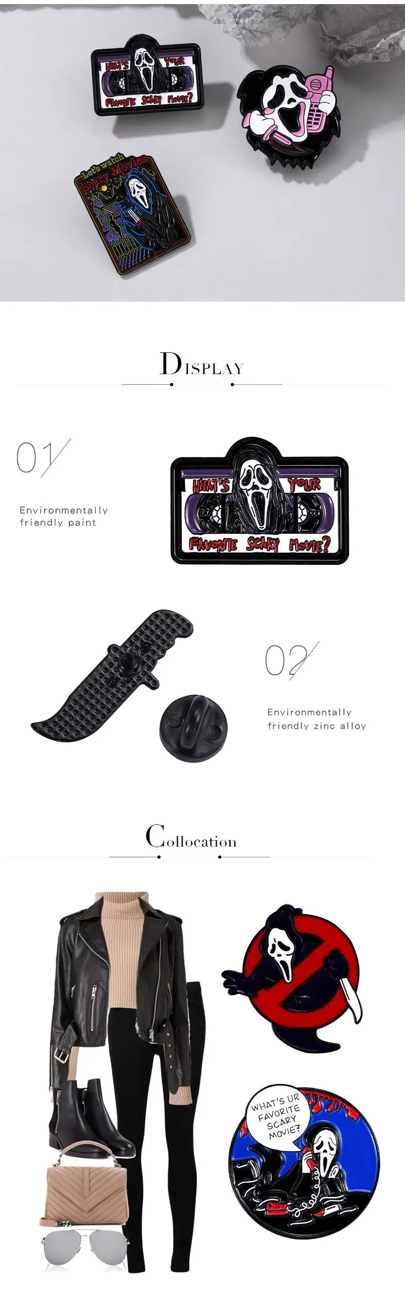 Call Me Enamel Pins What's Your Favorite Scary Movie Custom Brooches Lapel Badges Gothic Punk Skeleton Jewelry Gift for Friends