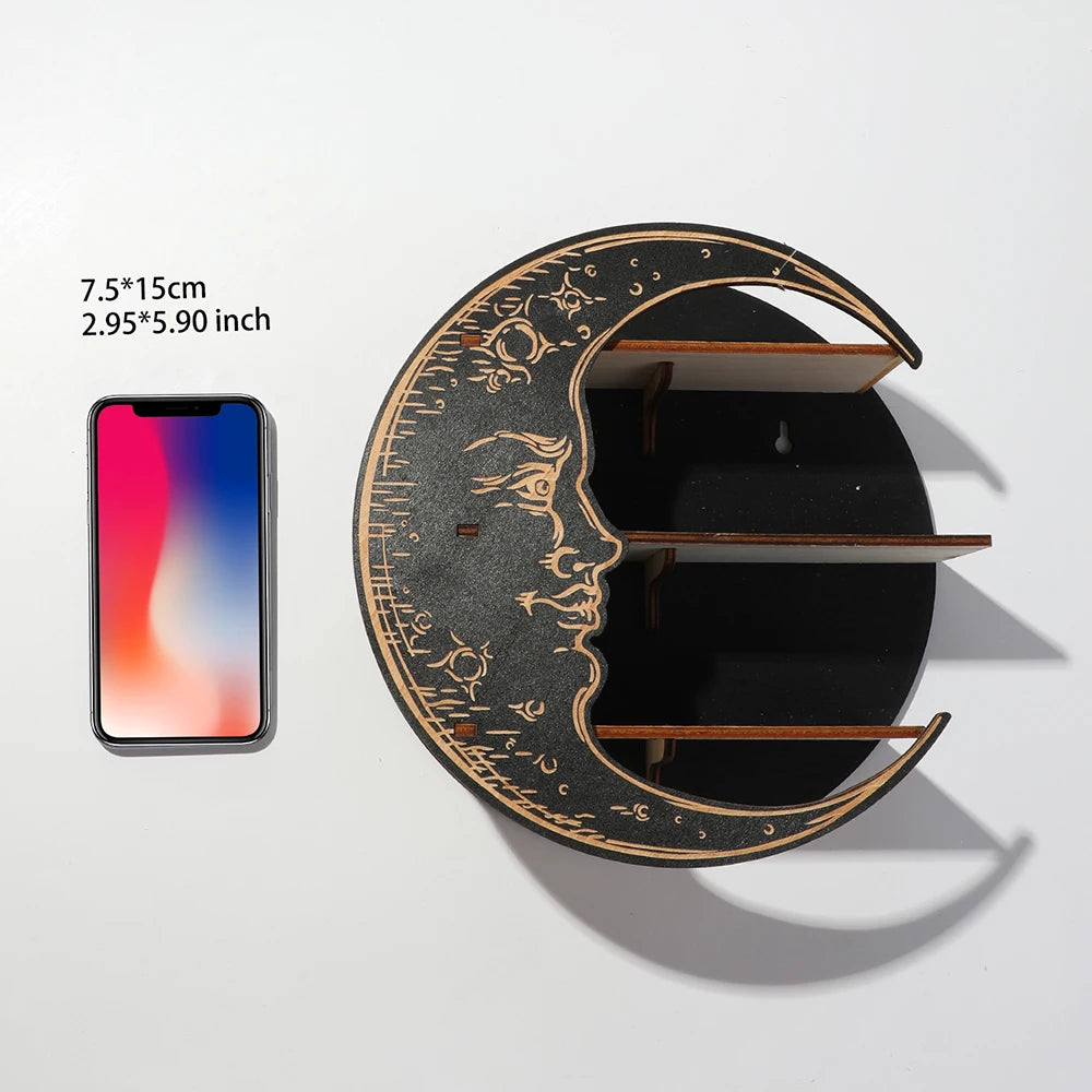 Crystal Display Wooden Shelf Moon Face Hanging Wall Jewelry Holder Bohemian Home Decor Floating Stand Shelves Room Decoration