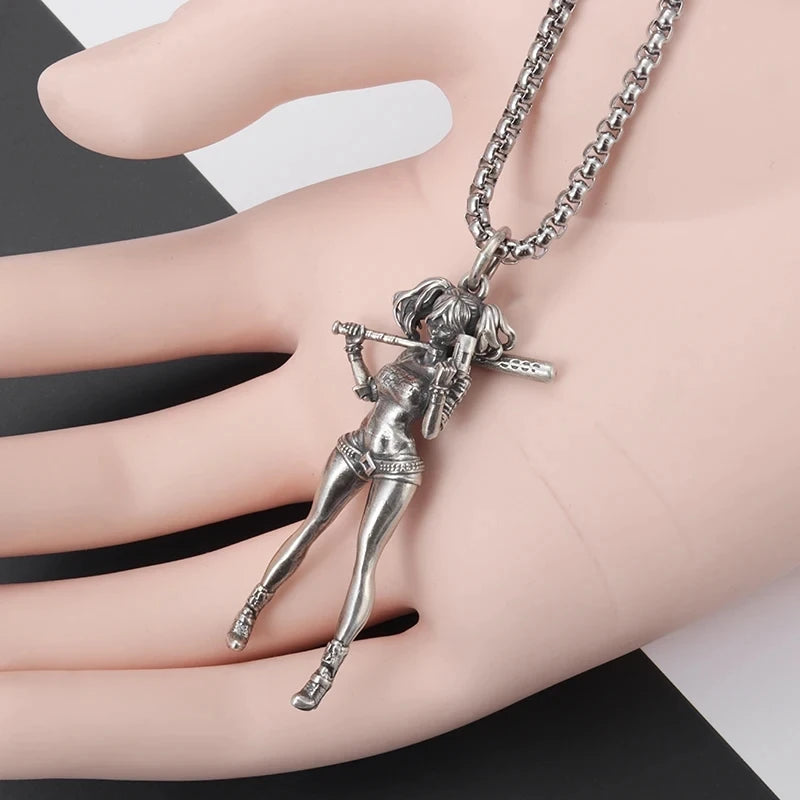 Fashionable and Sexy Female Baseball Player Statue Pendant Necklace Men and Women Hip-Hop Trend Jewelry Couple Gifts
