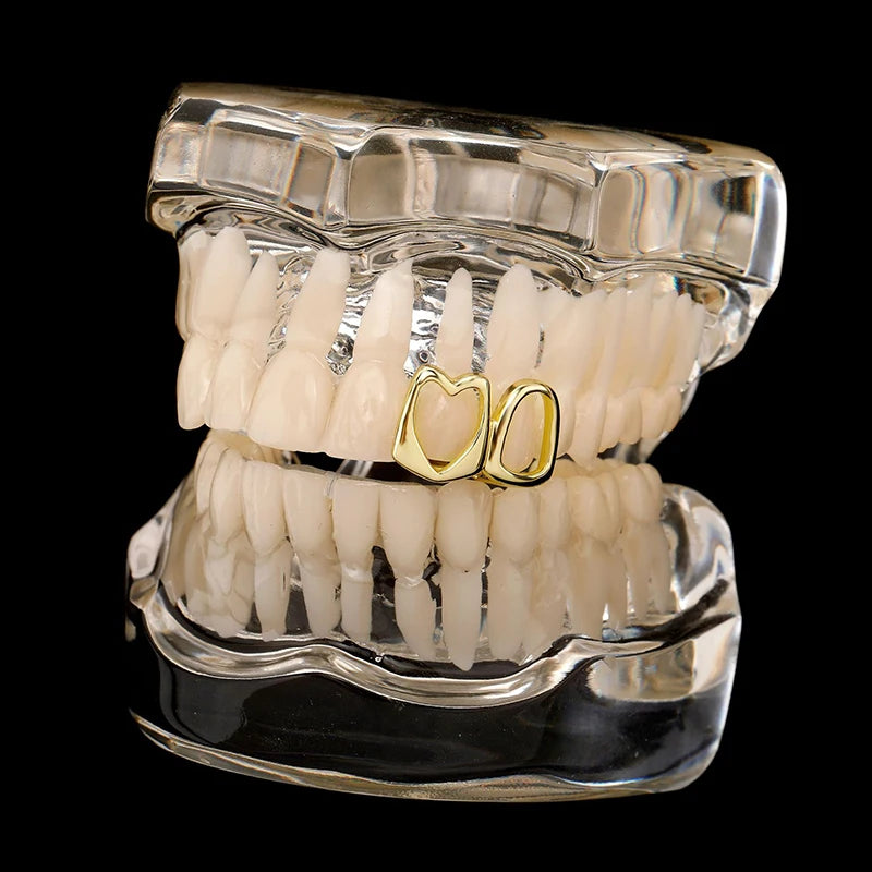 FTCY Hip Hop Hollow Heart Tooth Grillz For Women Gold Color Daily Wearable Tooth Jewelry Dental Grillz