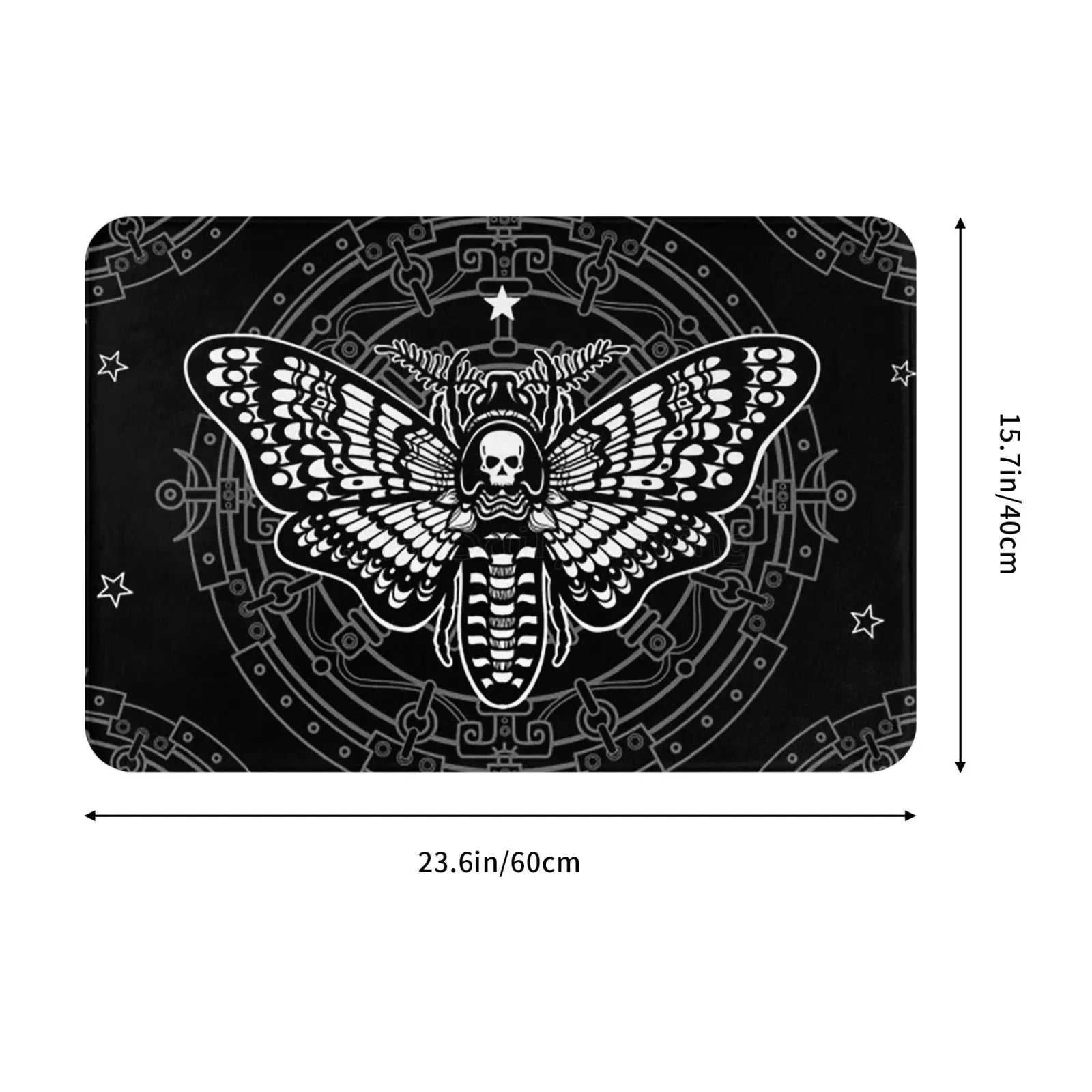 Gothic Witchy Butterfly Moth Floor Mat Mystical Moth Skull Dead Head Welcome Doormat Anti-Slip Bathroom Mat Entrance Rug Carpet