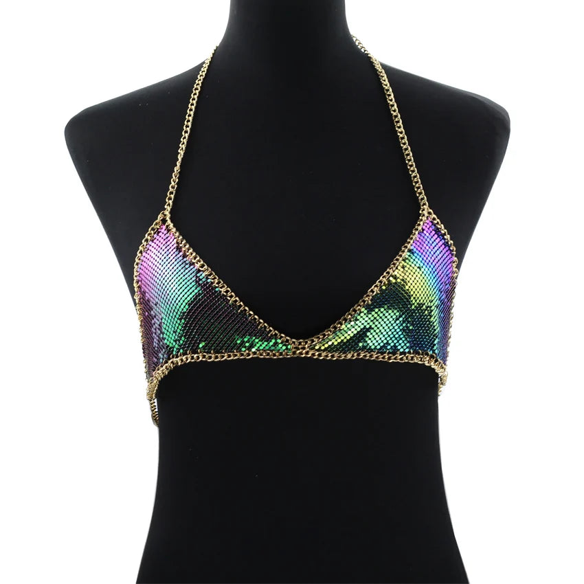 Mesh Sequin Body chain Bra Bikini Chain women Statement Metal bra chain bralette Beach Party Harness body jewelry