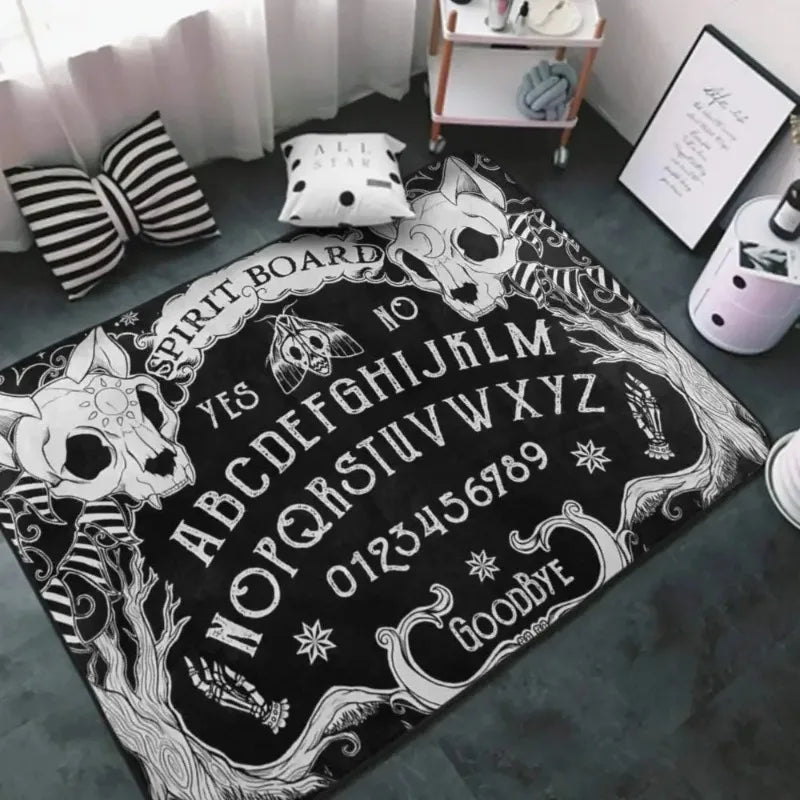 Modern Cat Skull Head Witch Board Carpet for Living Room Home Decoration Black Gothic Large Area Rugs Bedroom Non-Slip Floor Mat