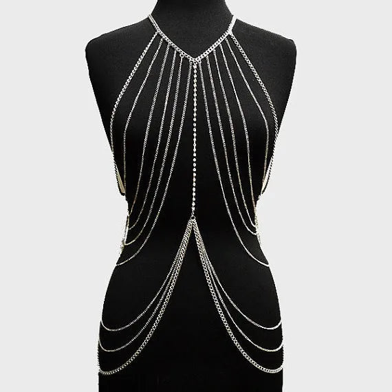 Multilayer Women Body Chain Harness Female Chest Chain Shiny Sexy Accessories Fashion Waist Jewelry Body Decoration
