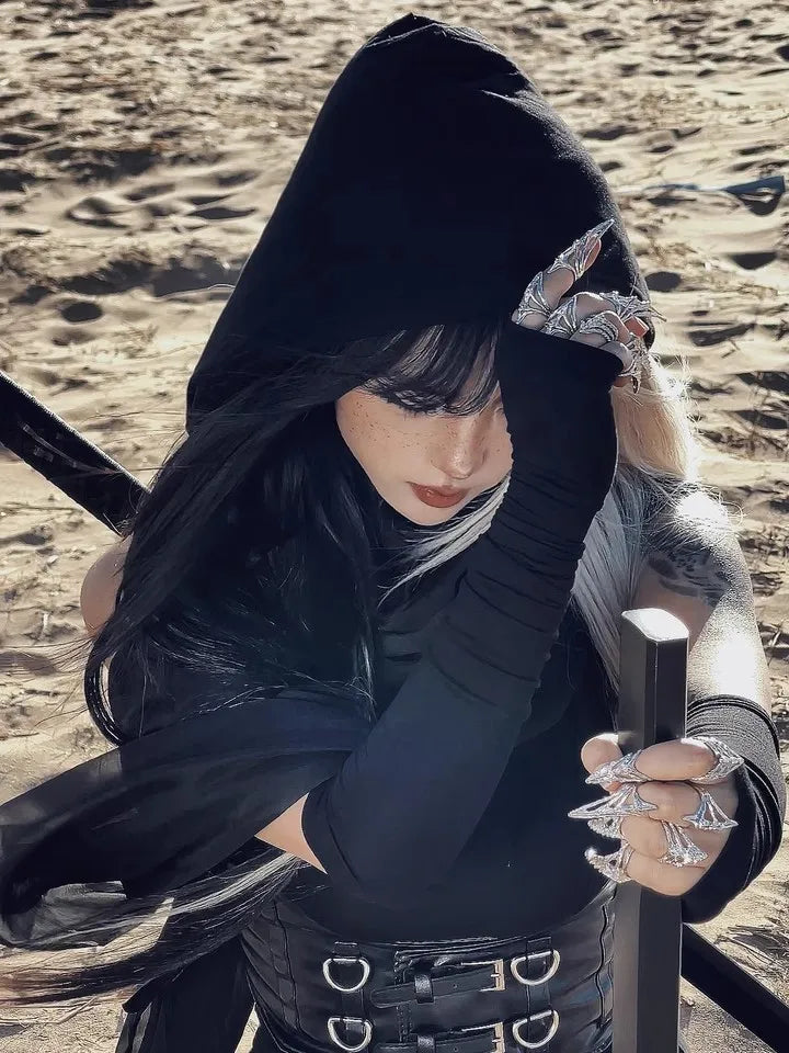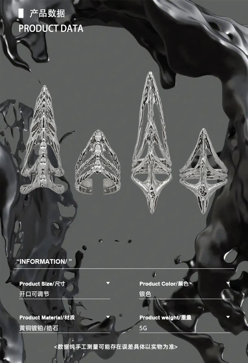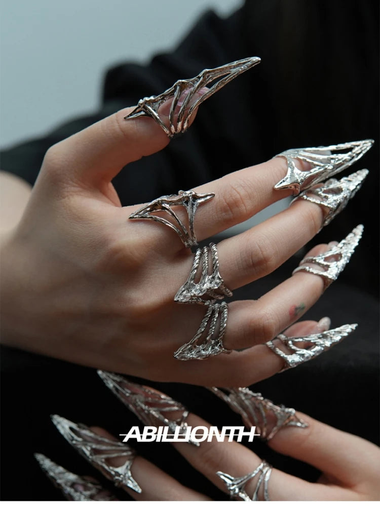 Punk Metal Nail Cover Bone Ring Gothic Rock Machinery Manicure Fingertip Ring Multilayer Finger Rings Cosplay Jewelry Set Gift