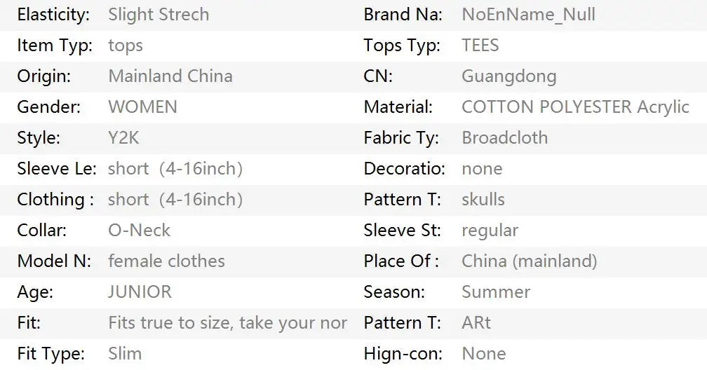 Punk Vintage 2000s Streetwear T shirts Women Clothes Gothic Slim Skulls Print Femme Tshirt Short sleeve Kpop Aesthetic Crop Tops