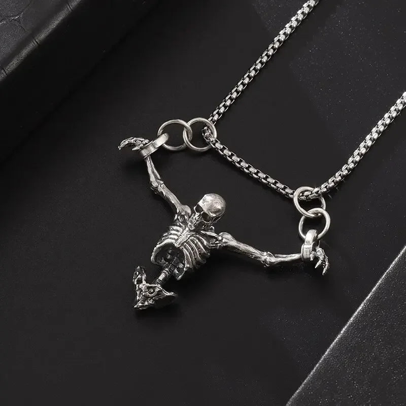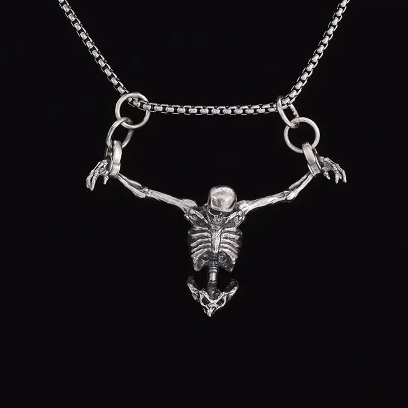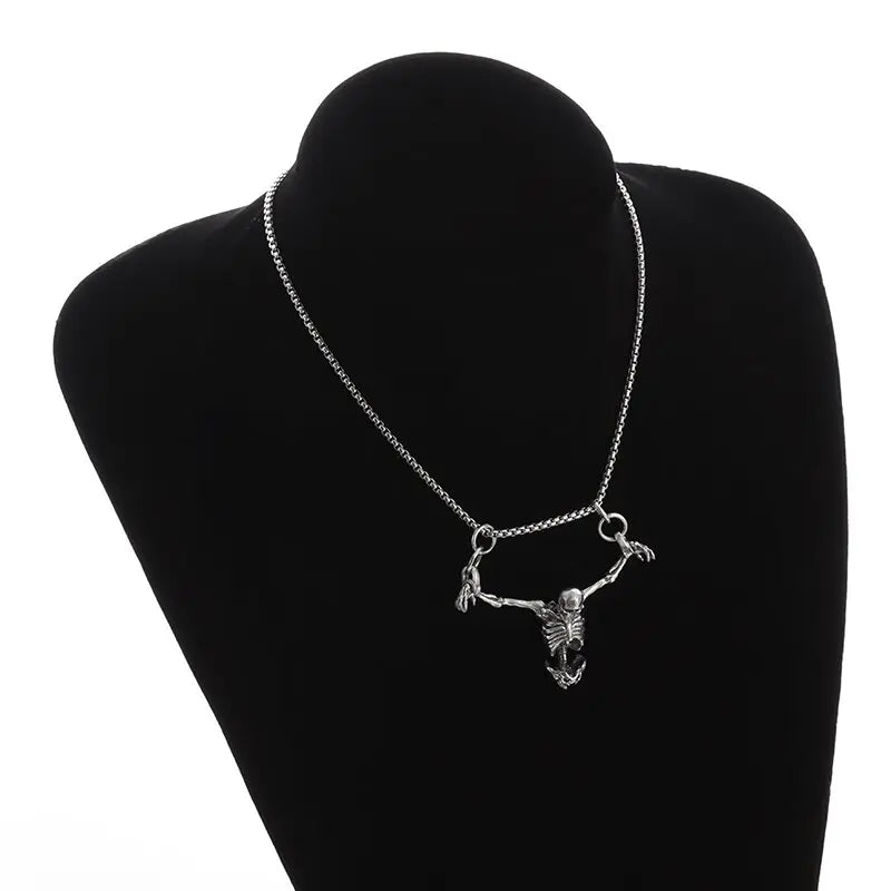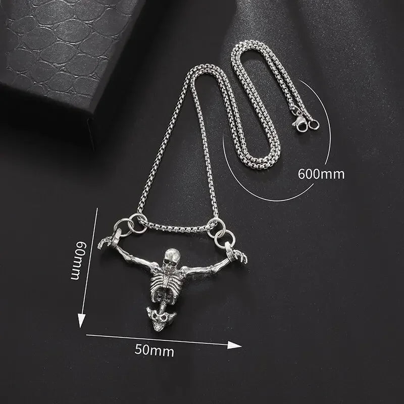 Silver Plated Captivity Skull Pendant Men\\'s Biker Punk Rock Necklace Gothic Halloween Jewelry Accessory
