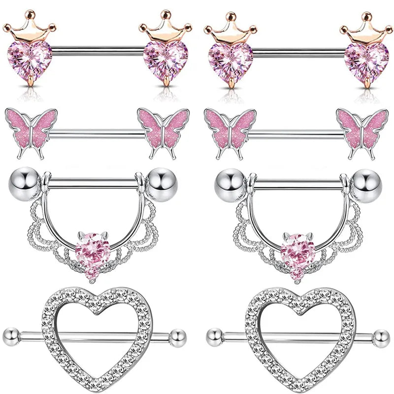 Stainless Steel Crown Nipple Piercing Set Heart Nipple Jewelry Bulk Crystal Nipple Ring Lot Piercing Pezon Body Jewelry Pack