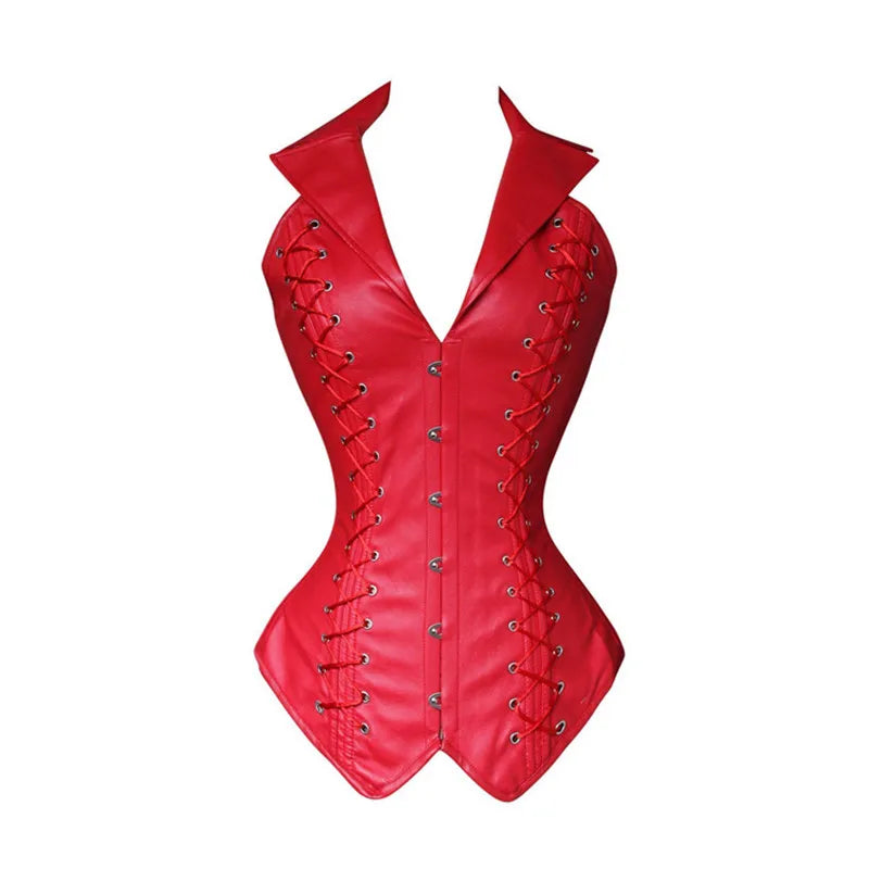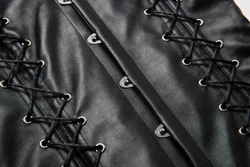 Steampunk Faux Leather Corset Vest for Women Gothic Side Lace-Up Steel Boned PU Corset Waist Slimming Trainer Body Shaper Korset
