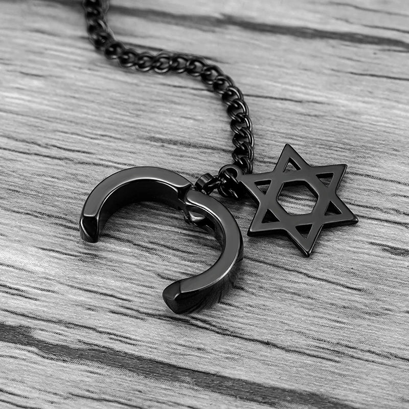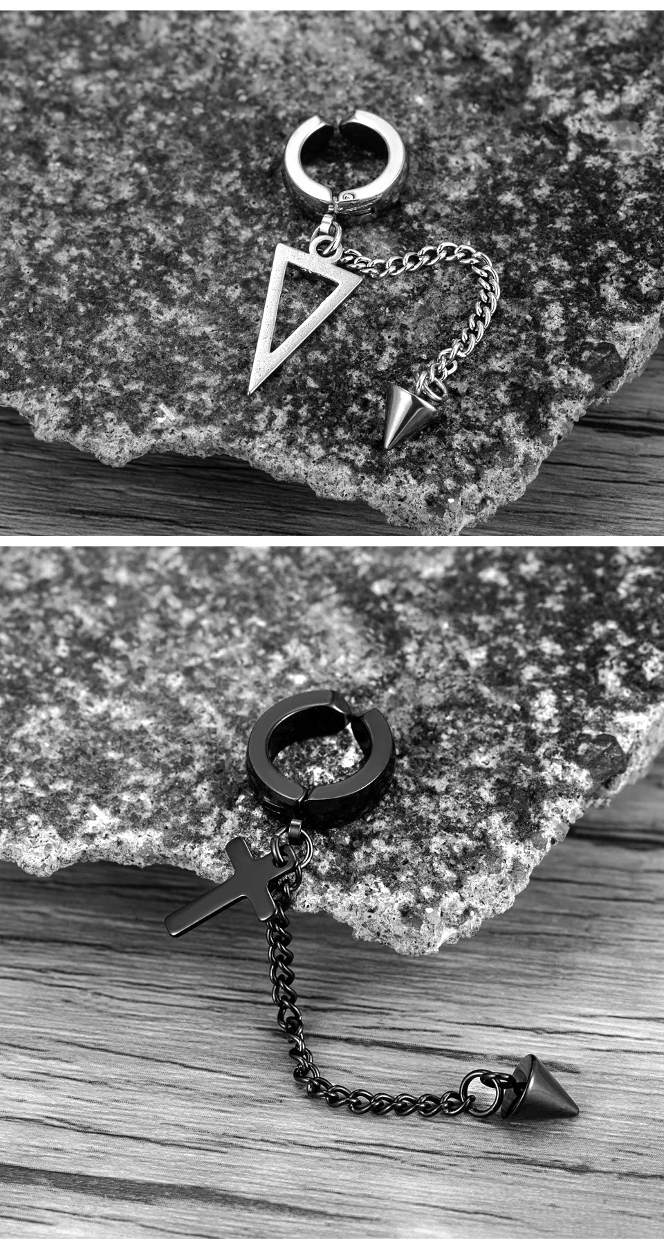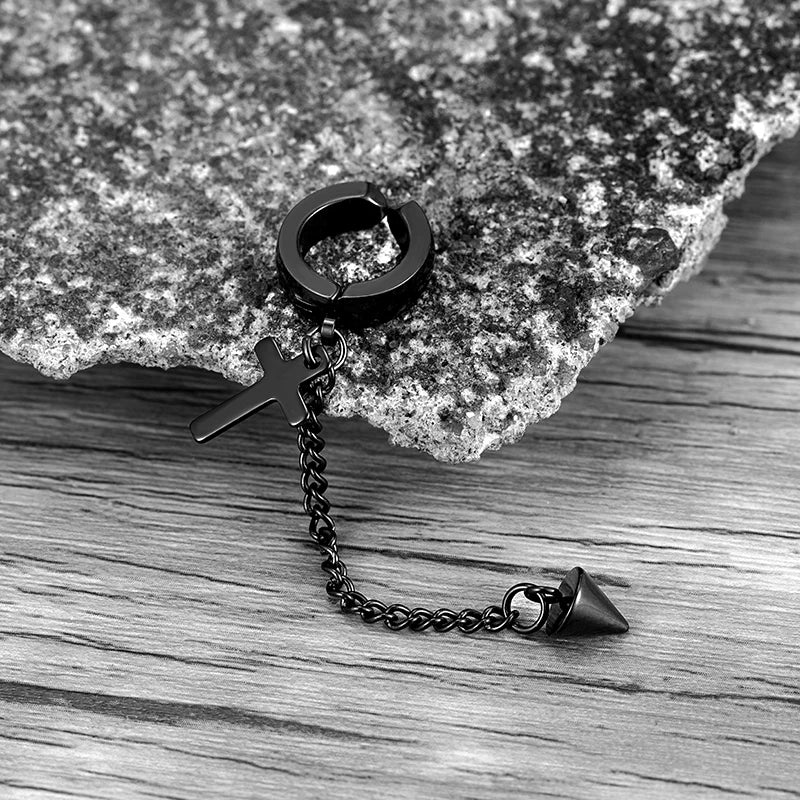 Trend Stianless Steel Tassel Ear Clip 1 Piece Chain Huggie Earrings Triangle Cross Pattern Earrings Men‘s Woman Punk Ear jewelry