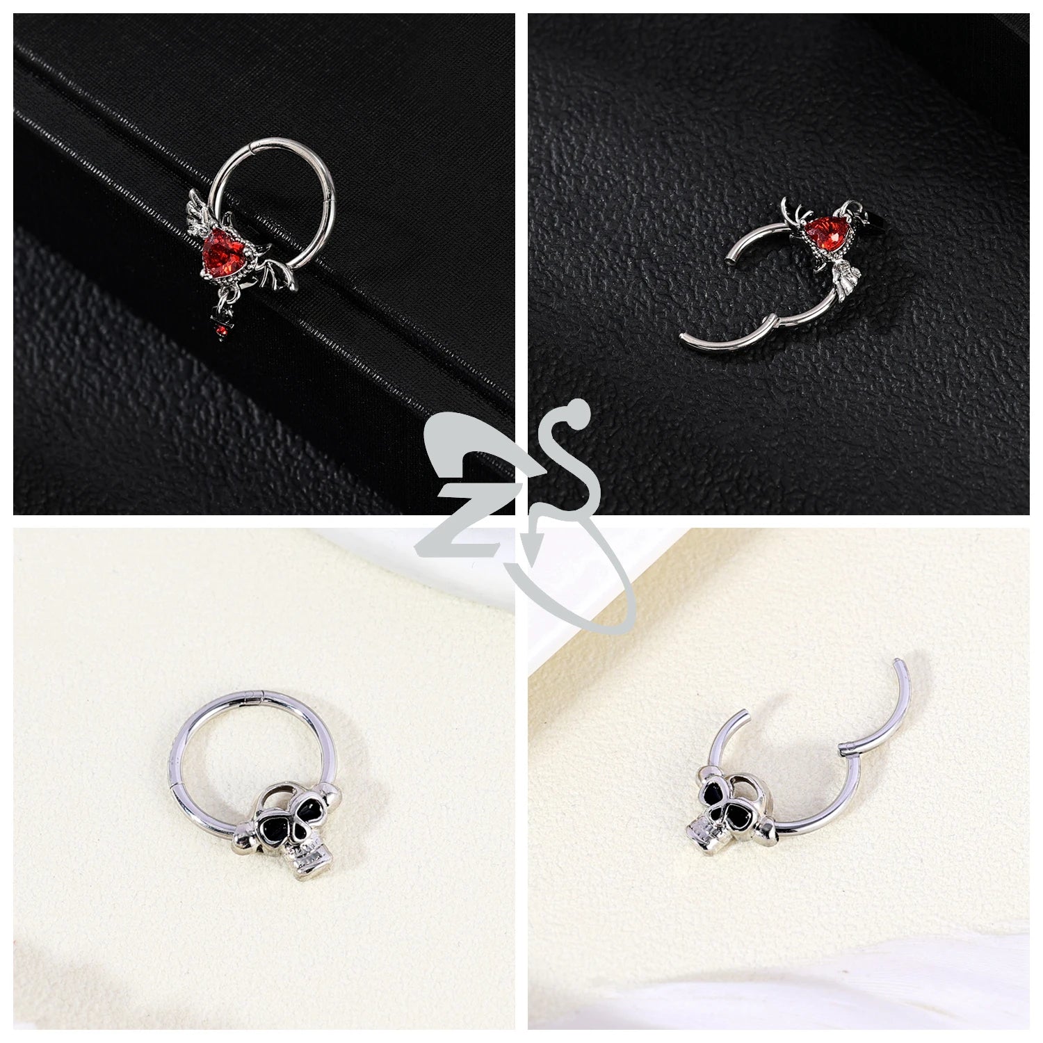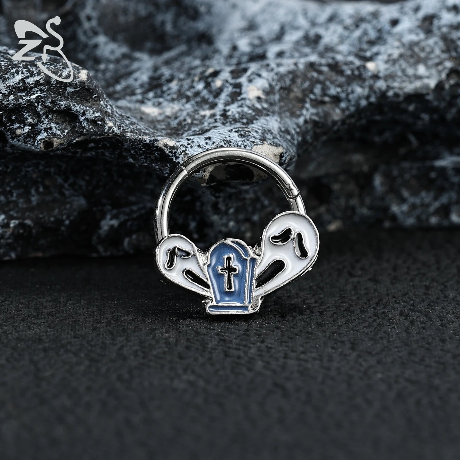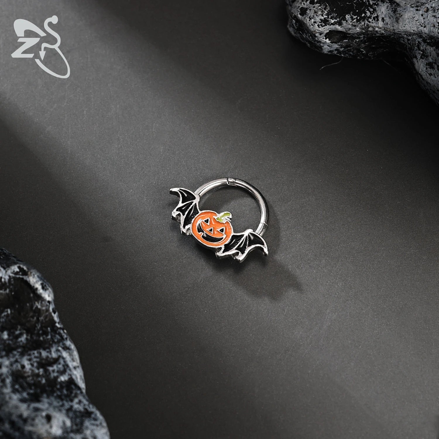 ZS 1 Piece Punk Stainless Steel Nose Ring Men Women Pumpkin Bat Septum Piercings Hallowmas Cartilage Helix Piercing Body Jewelry